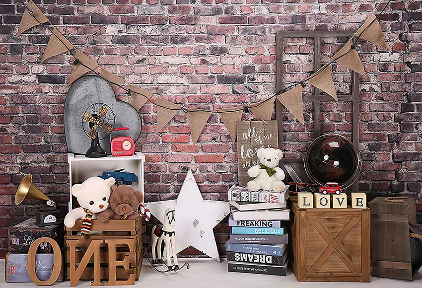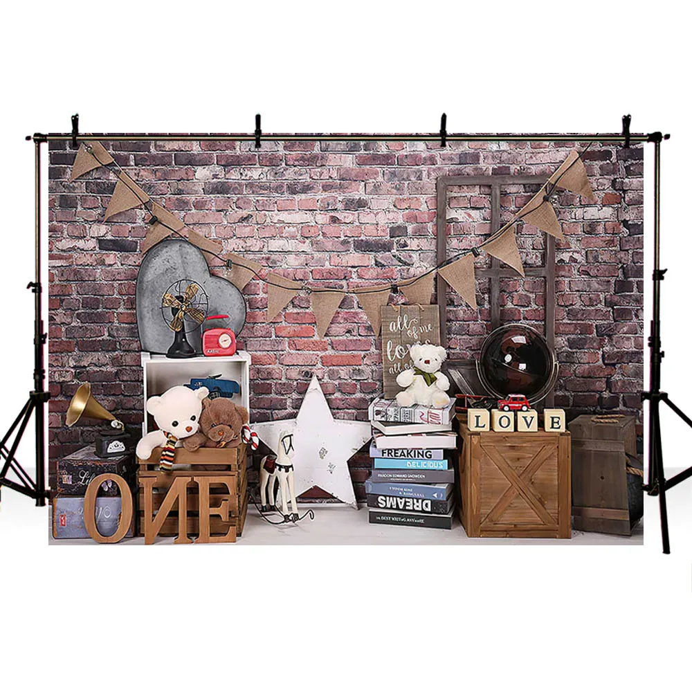 Фон для портретной фотосъемки с изображением мальчика на 1-й день рождения в стиле ретро