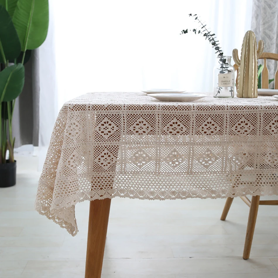Полый вязаный крючком скатерть, кружевная бежевая ткань, американский кантри, скатерть для гостиной, спальни, коврик