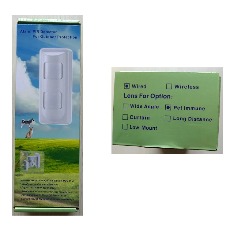 Примечание: Есть 3 дополнительных объектива: широкоугольный/ПЭТ иммунный/занавеска. Иммунитет для домашних животных позволяет домашним животным (например, собакам, кошкам весом до 30 кг) проходить в защищенную зону без срабатывания сигнализации. Линзы для штор обеспечивают более широкий спектр инфракрасной защиты линии, как и занавеска.