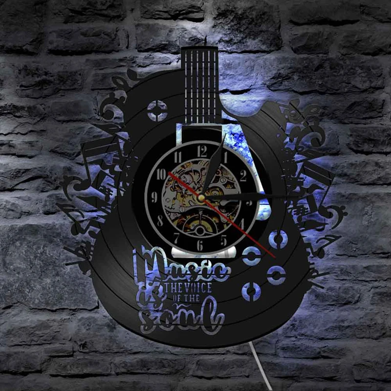 Настенные виниловые часы для акустической гитары, украшение на стену для праздника, музыкального инструмента, дома, гостиной