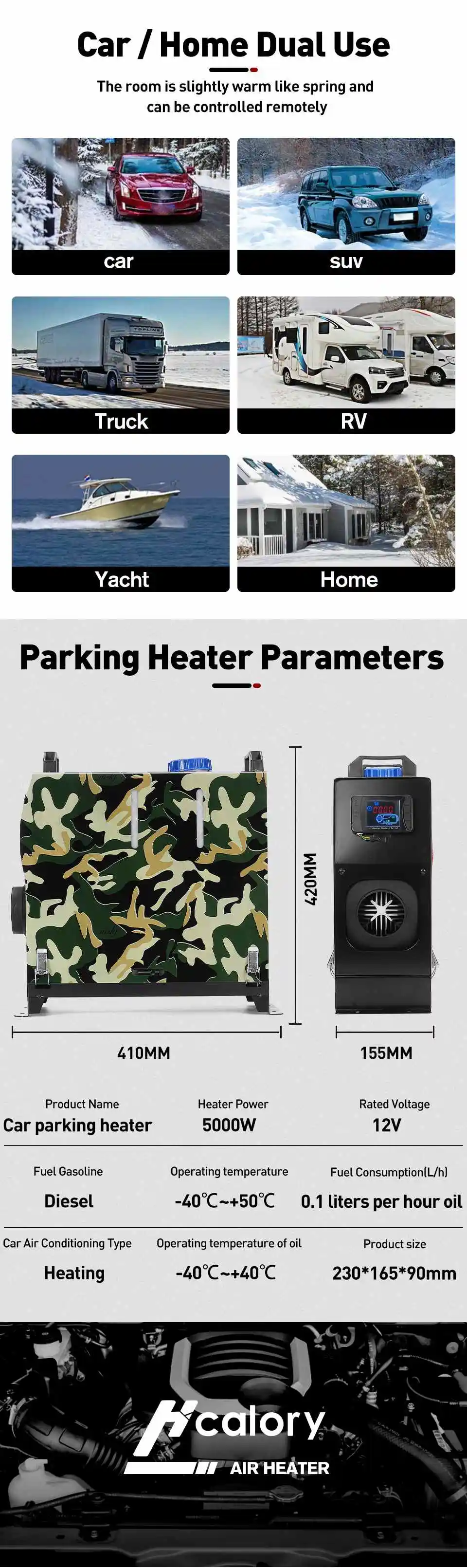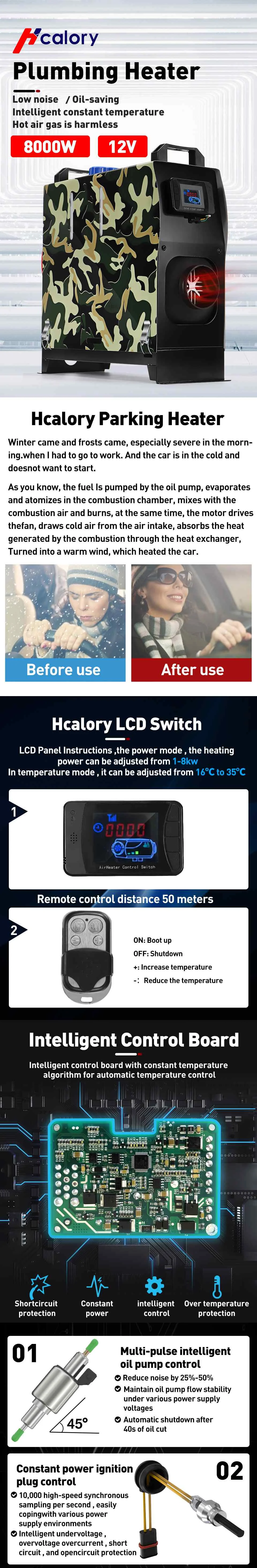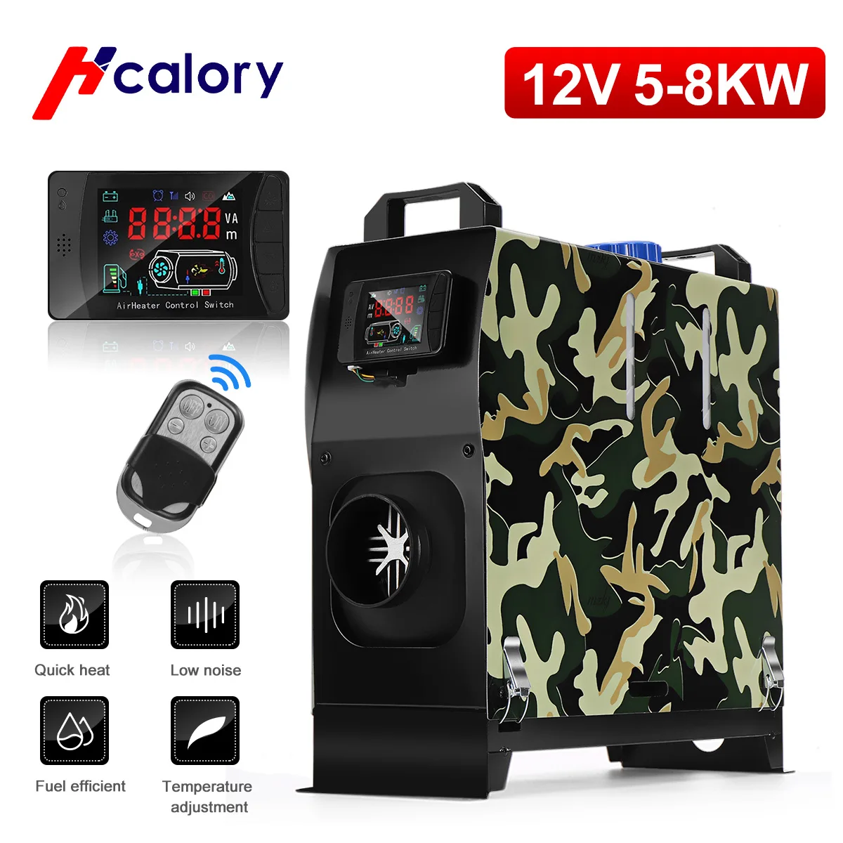 Стояночный обогреватель Hcalory для дизельного топлива с одним отверстием и ЖК-монитором, подогреватель воздуха для автомобилей, грузовиков, автобусов, лодок, домов на колесах, все в одном блоке 5-8 кВт, 12 В, автомобильный обогреватель