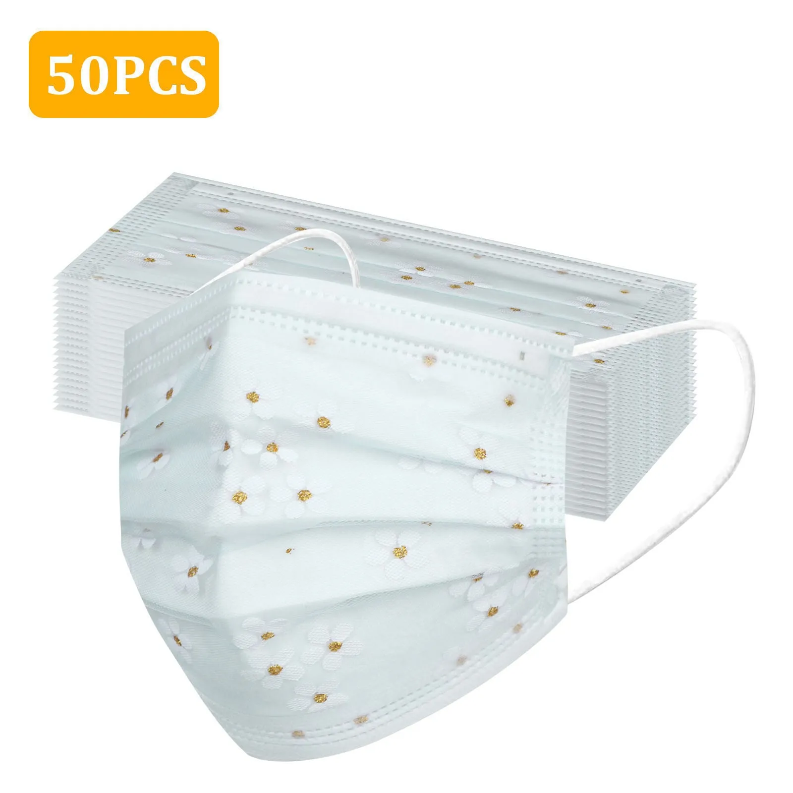 Сетчатая четырехслойная одноразовая Защитная маска для взрослых с блестками и цветами