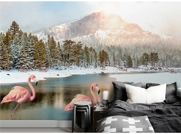 Фотообои на заказ Северный Фламинго пейзаж фон настенная живопись гостиная столовая домашний декор Papel де Parede 3 D