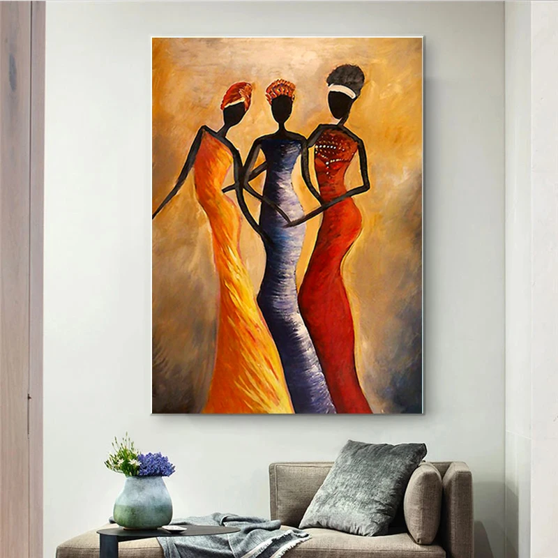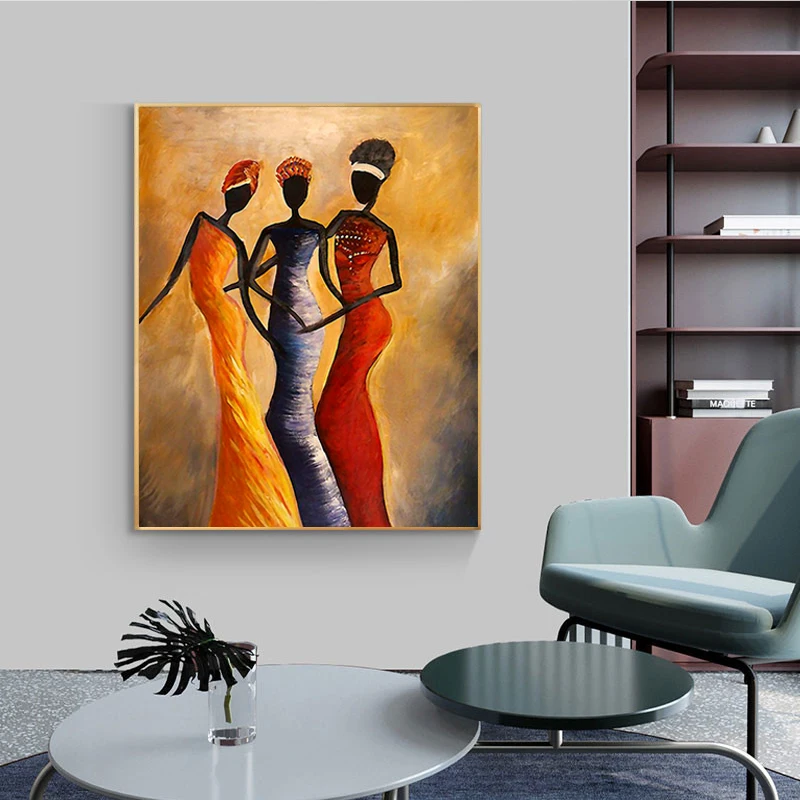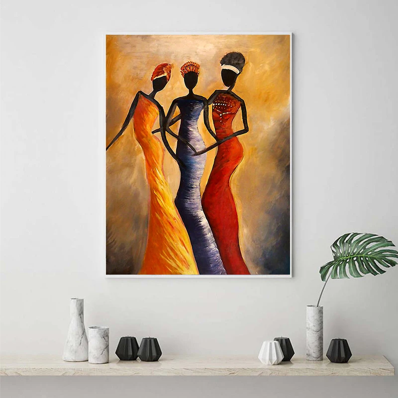 Современные Африканские черные золотые женские картины маслом на хо...