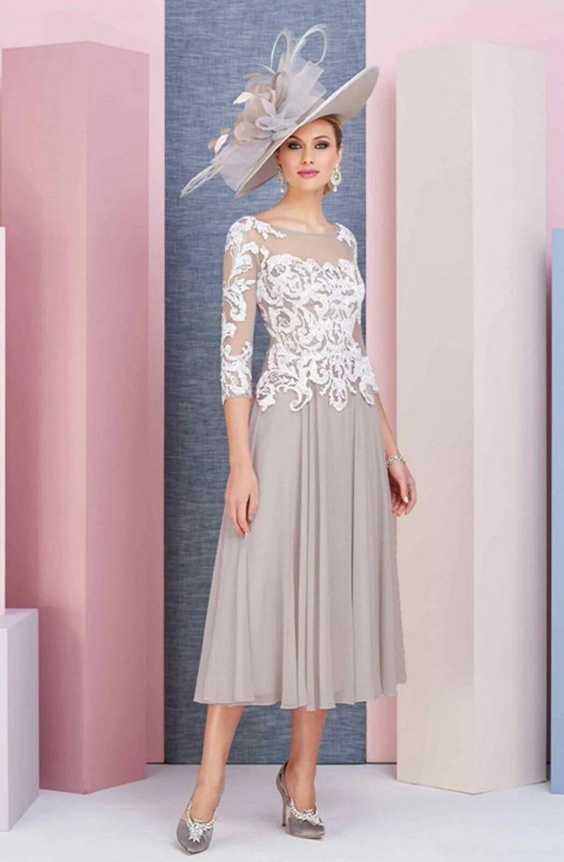 Очаровательные платья до середины икры для матери невесты короткие кружевные свадебные платья с рукавом 34 для гостей жемчужный вырез vesrido madrinha