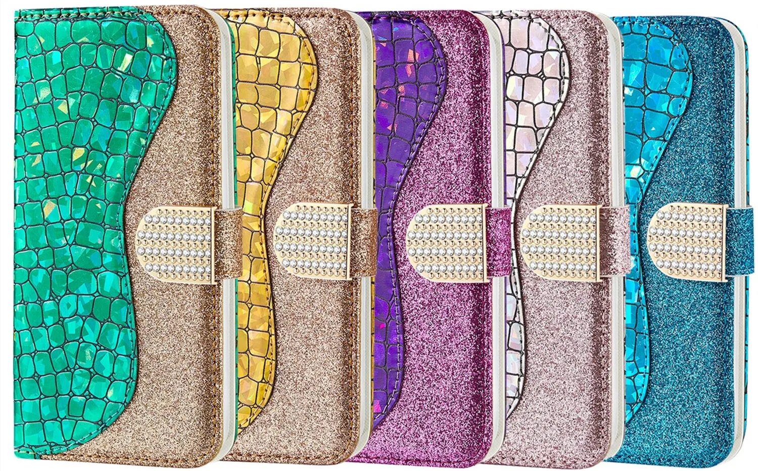 Блестящий кожаный чехол-книжка для Samsung Galaxy A52 A52S A12 A32 ...