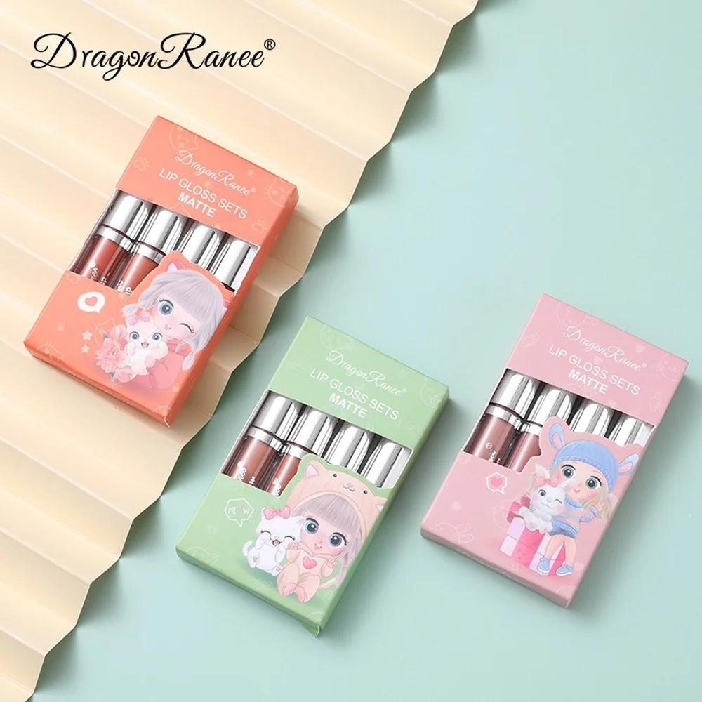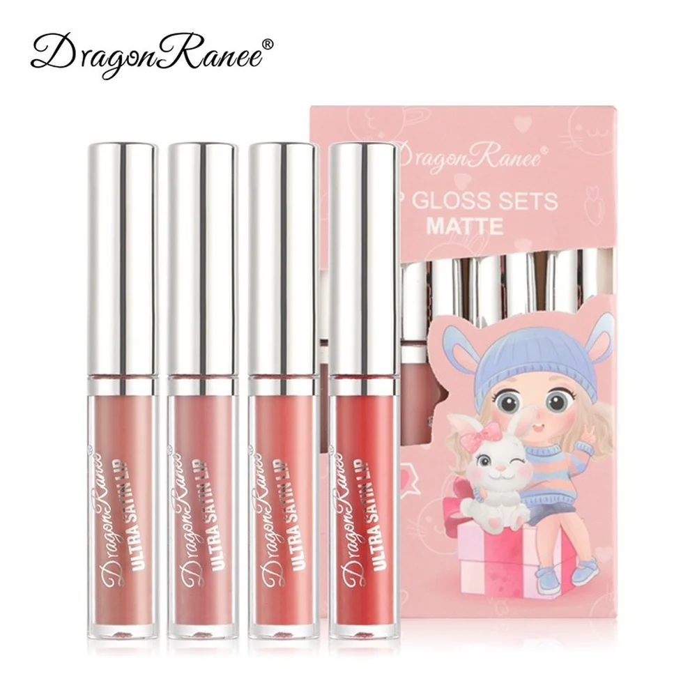 Матовая губная помада для девочек, 4 набора глазури для губ, устойчивая к выцветанию, имеет тонкую текстуру и легко окрашивает Начинающий макияж губ