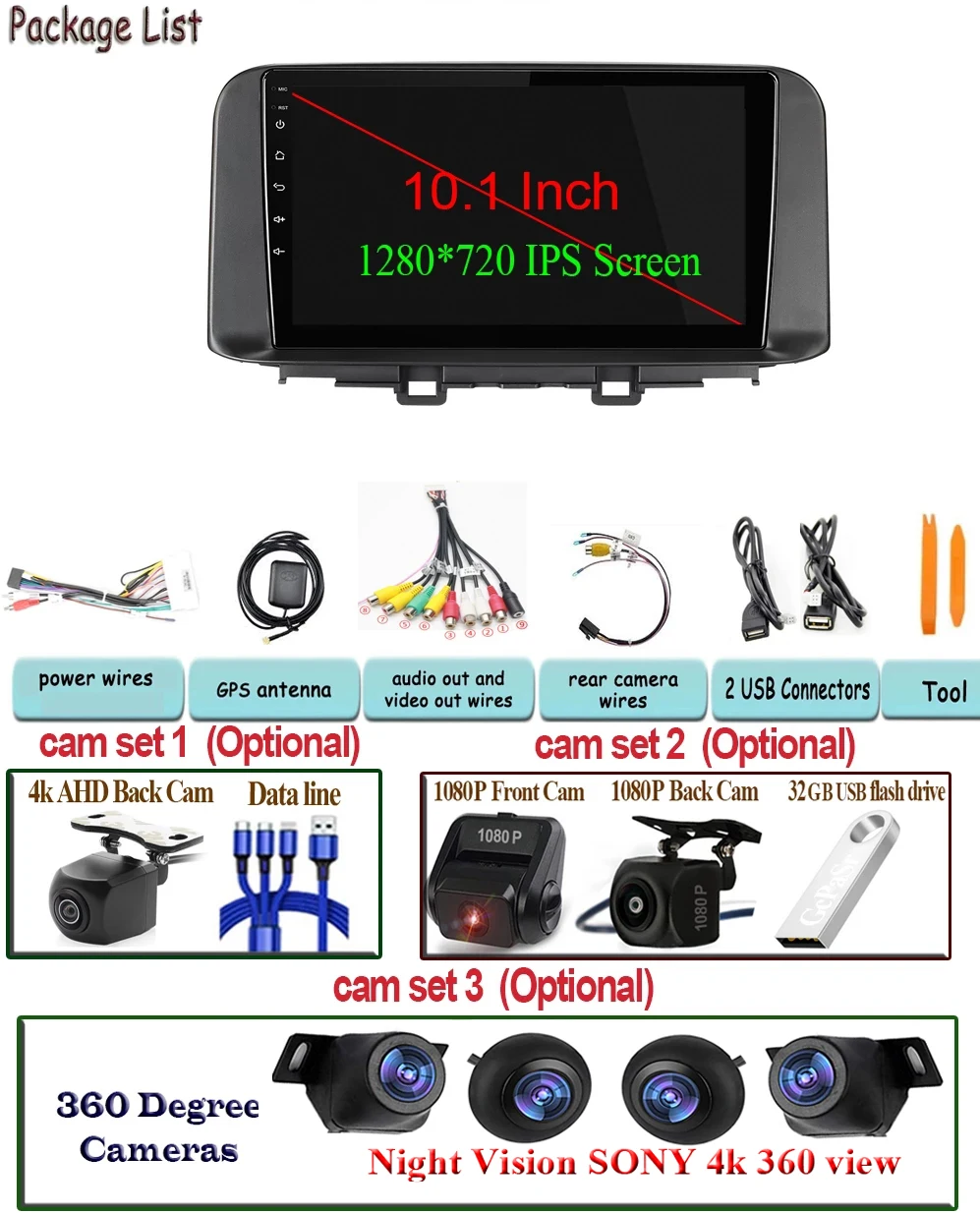 Автомобильный стерео Мультимедийный проигрыватель 360, камера для H...