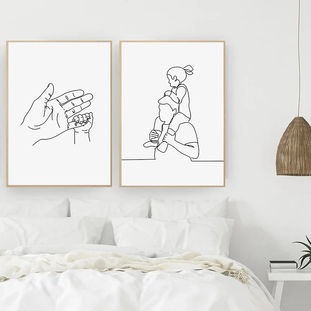 Семейный портрет, принт, Папа, мама, ребенок, линия, настенный худо...