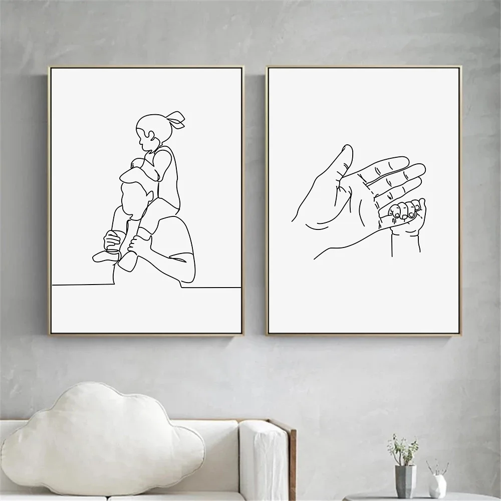 Папа мама ребенок постер абстрактная линия рисунок искусство печать...