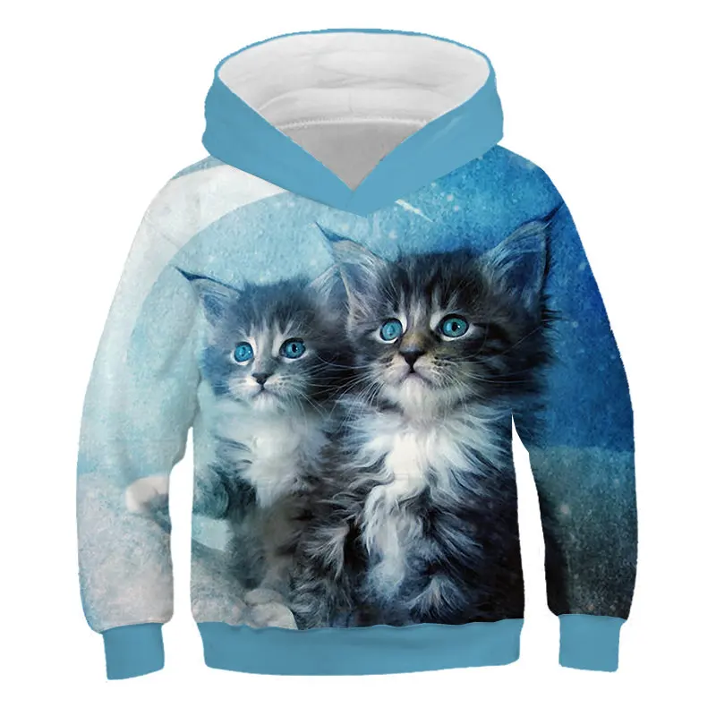 Модная толстовка с котом для мальчиков и девочек толстовка с 3D при...