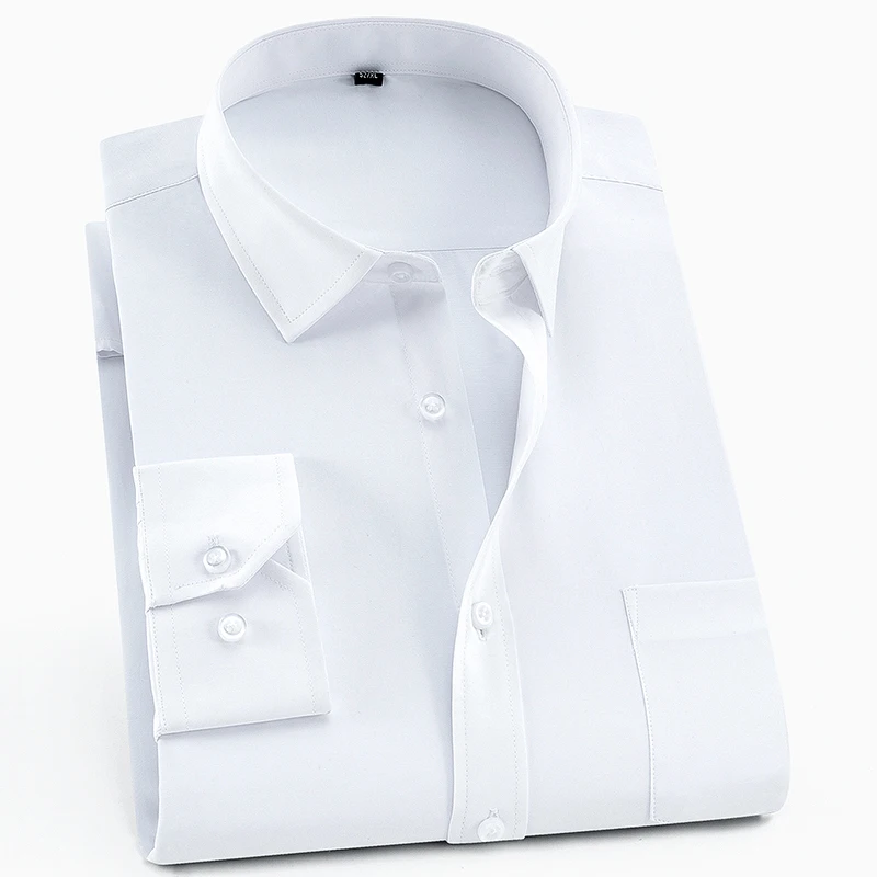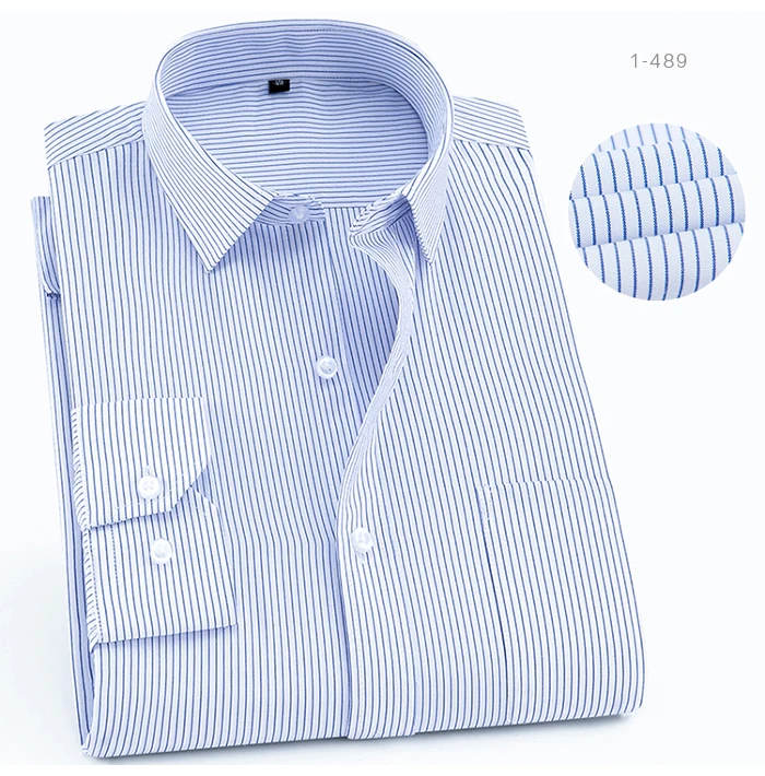 Мужская классическая рубашка, однотонная Базовая рубашка в полоску, с длинными рукавами, одним накладным карманом, для работы и офиса