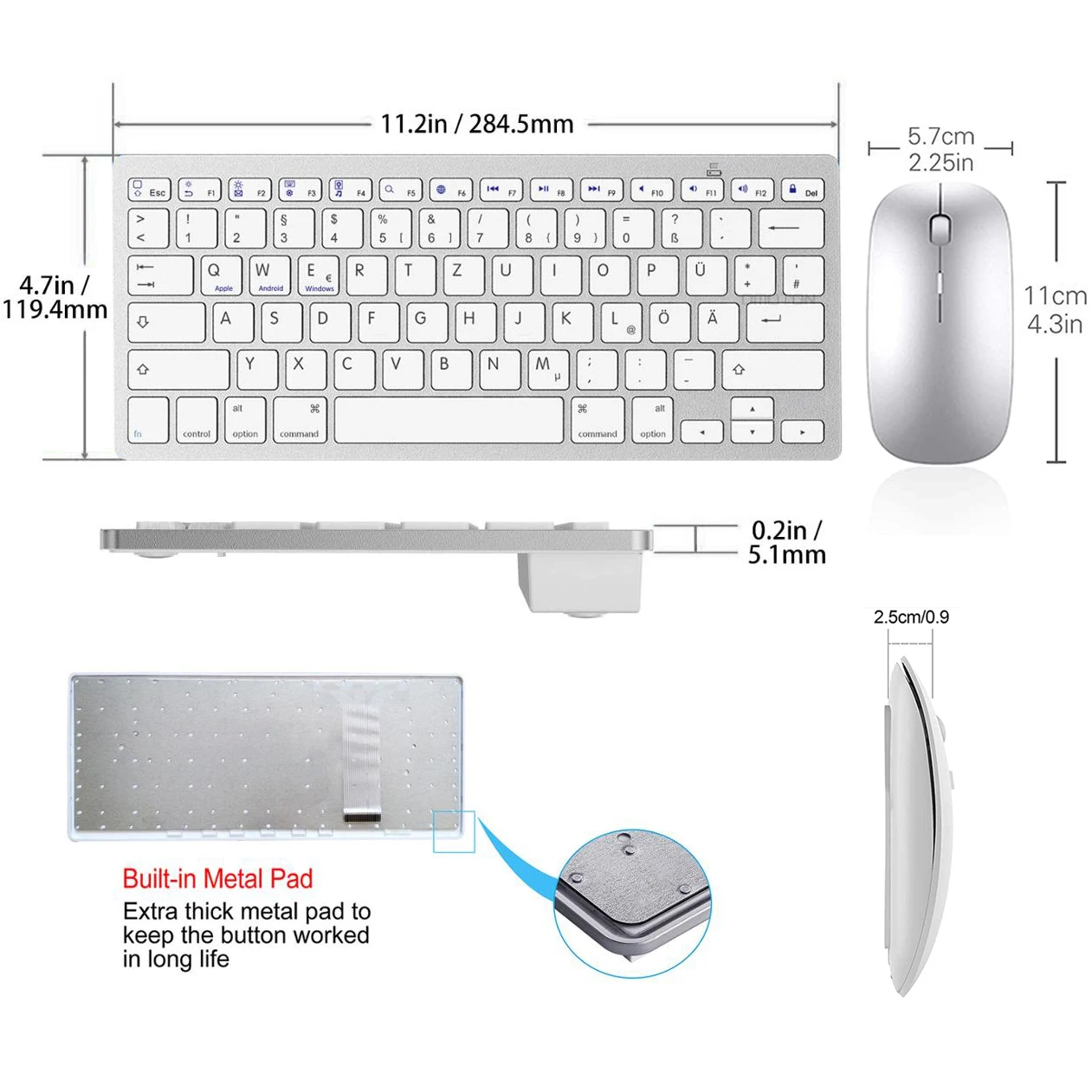 Немецкая беспроводная мышь QWERTZ, ультратонкая Бесшумная Bluetooth клавиатура, мышь, мышь для Mac, iPad, iOS, Android, Windows