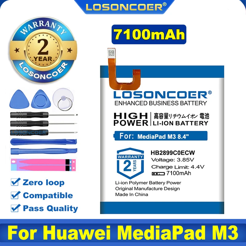 100% Оригинальный аккумулятор LOSONCOER 7100 мАч HB2899C0ECW для Huawei MediaPad M3 8,4 " / M5 8,4 BTV-W09 BTV-DL09 SHT-AL09 SHT-W09