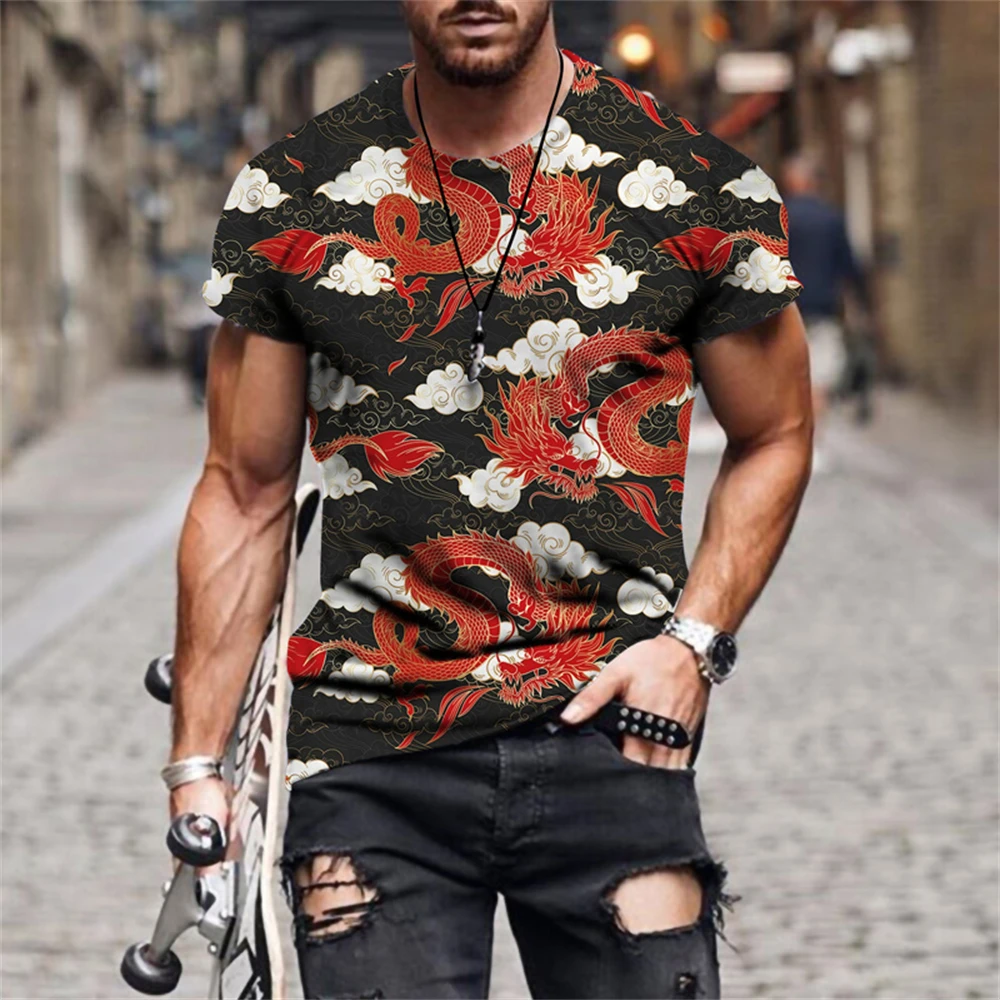 Летняя мужская футболка, уличная мода, ретро примитивный стиль, Рог...