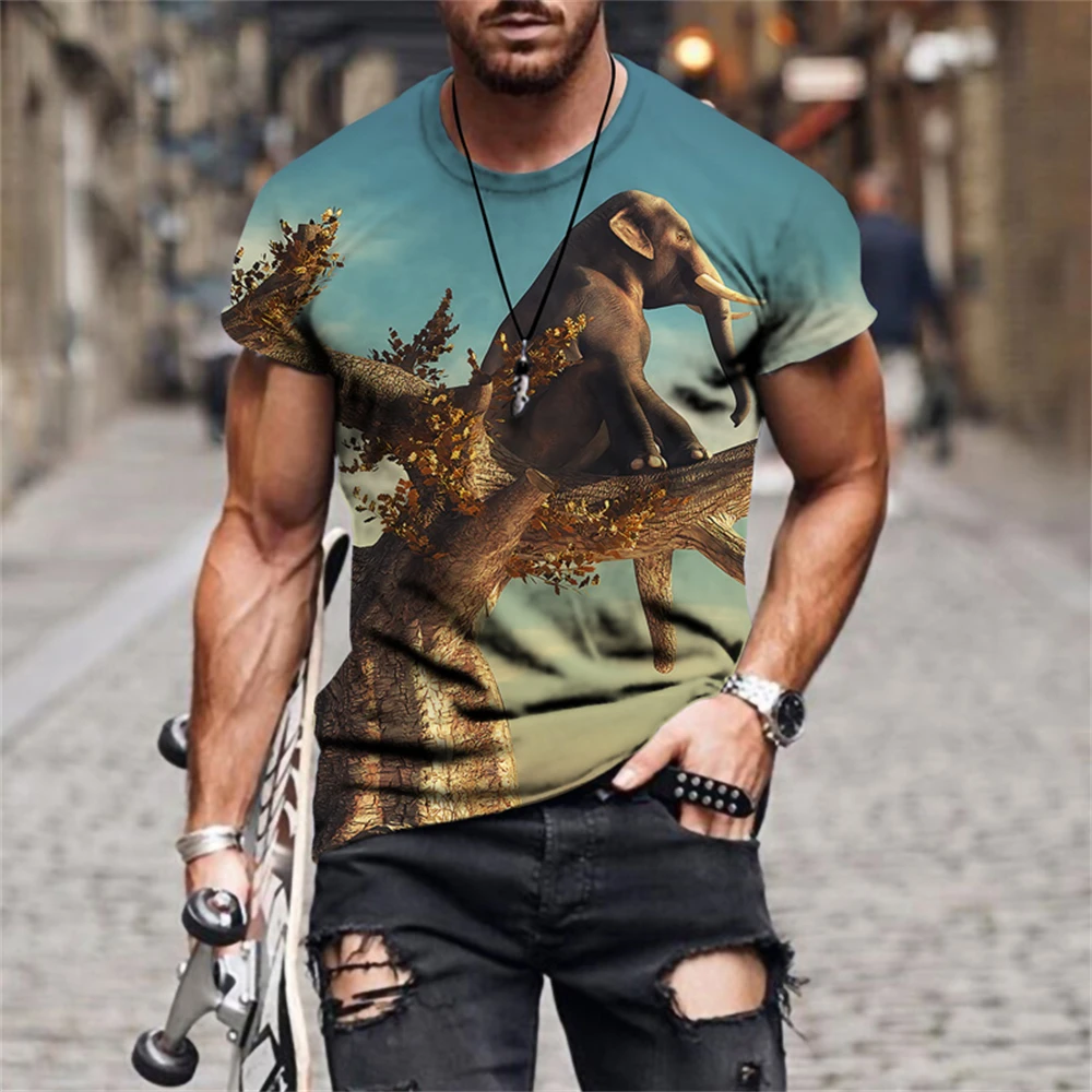 Футболка мужская с 3D-принтом акулы и оленя, модная тенниска с коро...
