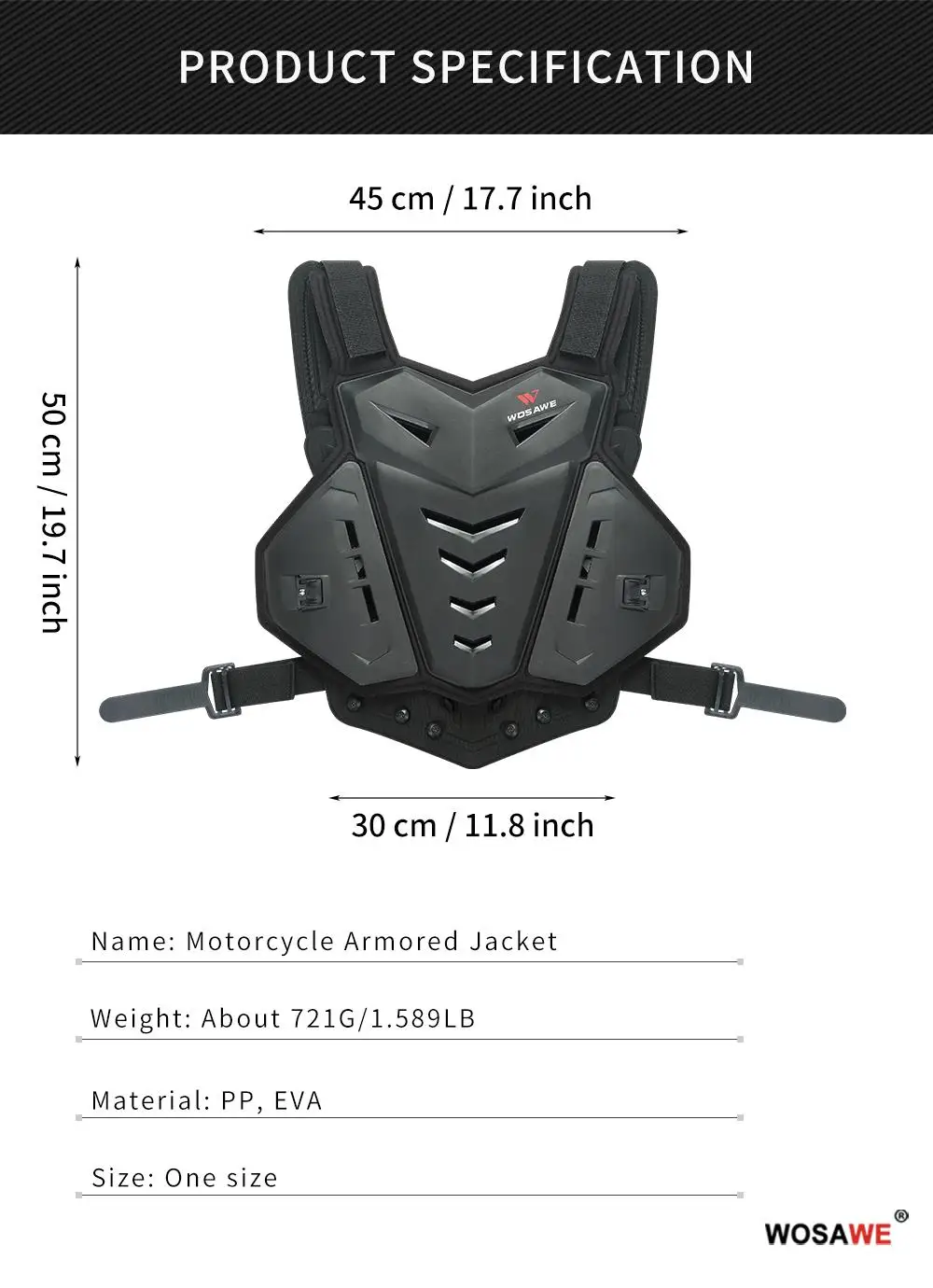 WOSAWE взрослый мотоцикл беговые Открытый дышащий жилет Броня Грудь протектор Назад