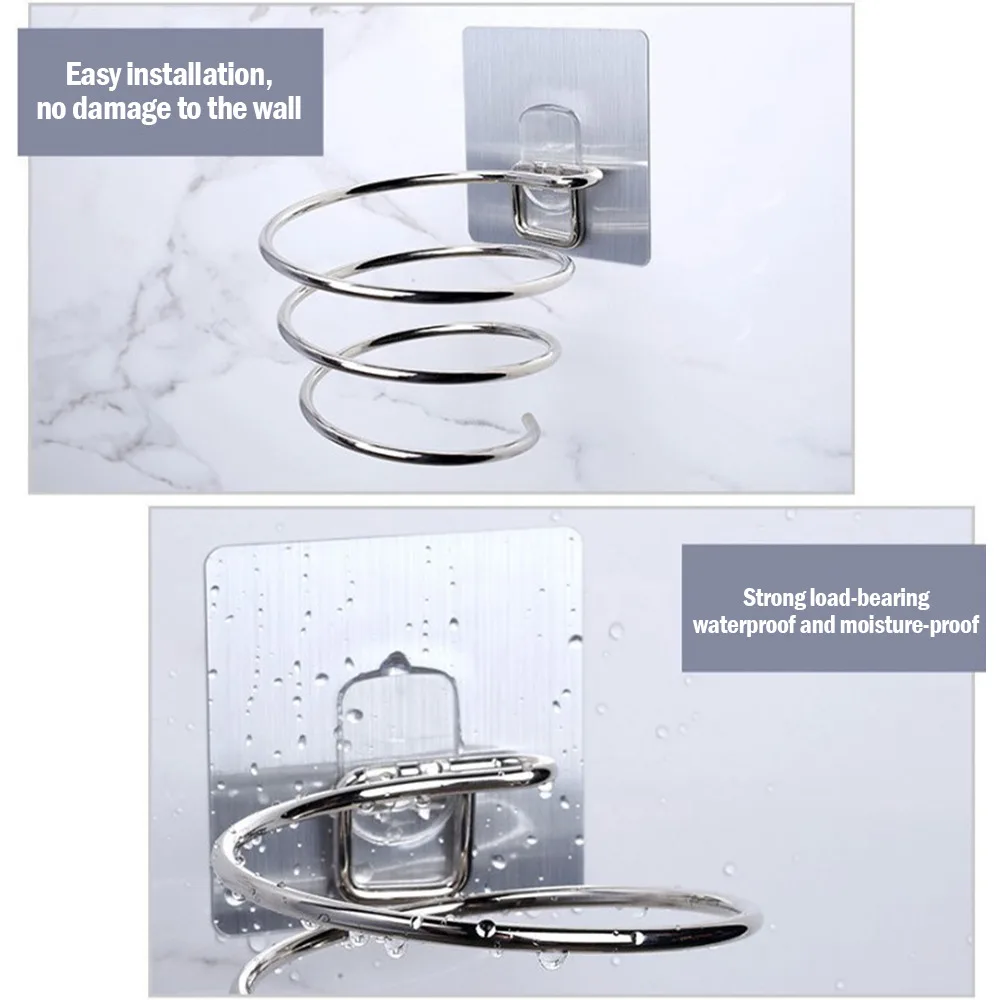 Аксессуары для ванной, держатель для фена, держатель для дома на клейкой основе, без гвоздей, без сверления, спиральная подставка из нержавеющей стали