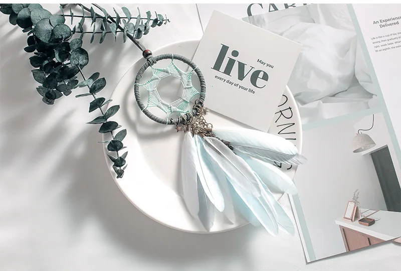 Креативный мини-кулон Ловец снов, тканый автомобильный кулон, украшение для комнаты, подвески в виде перьев в индийском стиле, Брелоки для ключей, ветромузыка