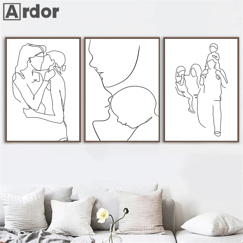 Папа мама ребенок постер абстрактная линия рисунок искусство печать...