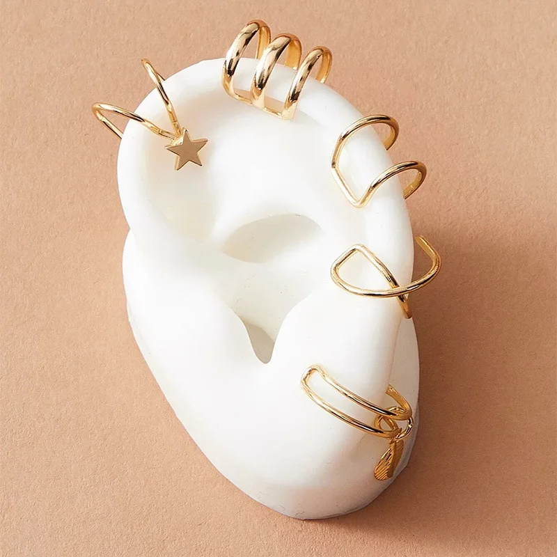 7 шт. модные золотые листья звезда не пирсинг серьги-клипсы для уше...