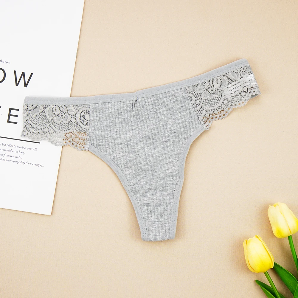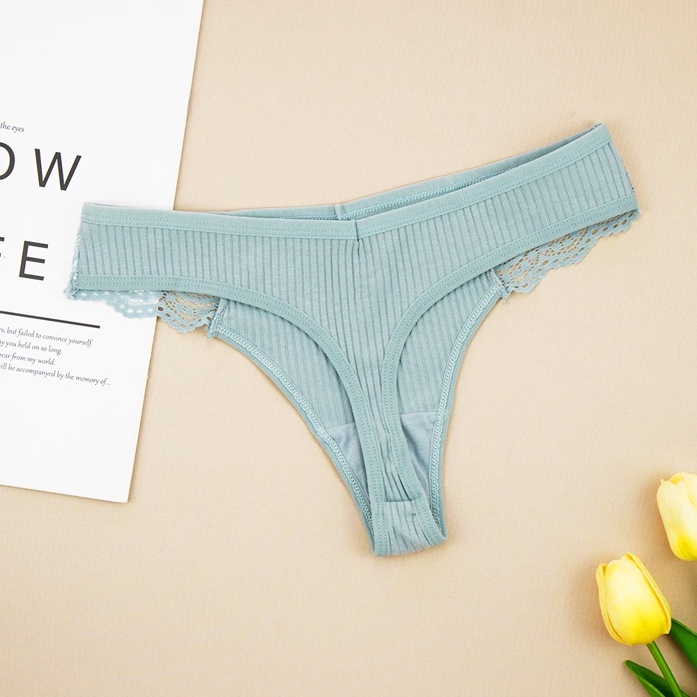 1 шт., женские хлопковые трусики-стринги с кружевом