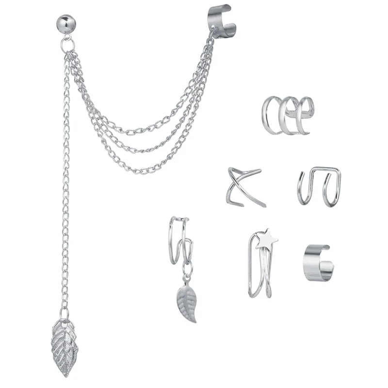 Набор каффов для ушей, 12 шт., из нержавеющей стали, поддельные сер...