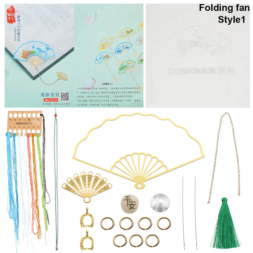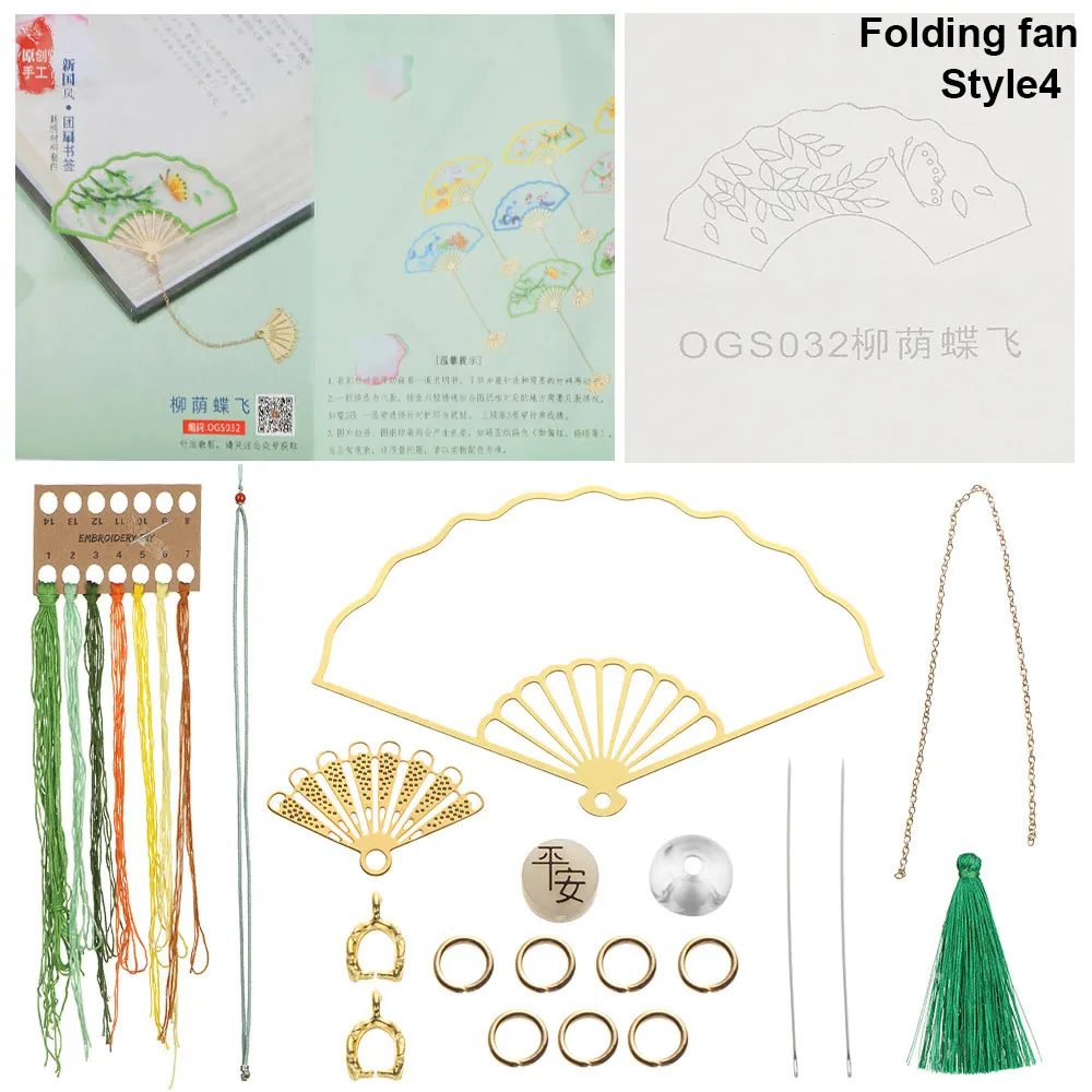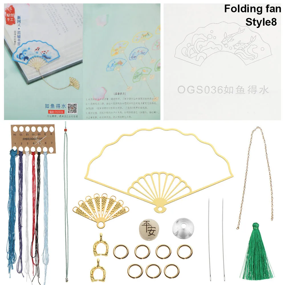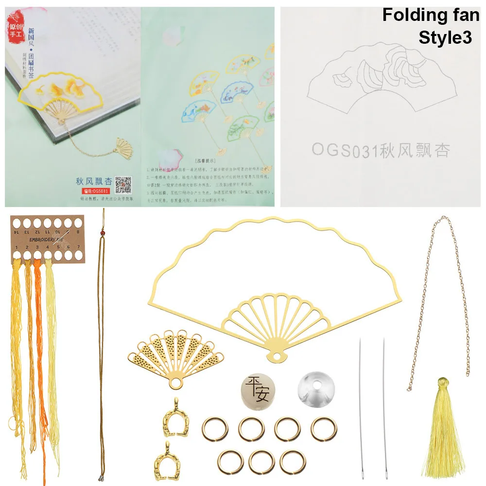 19 типов, в китайском стиле, для самостоятельной сборки, в форме веера, искусственная живопись, вышивка крестиком, кисточка, набор закладок, подарок для книг