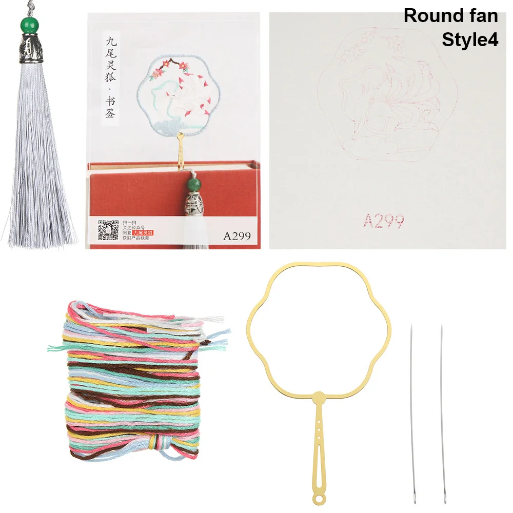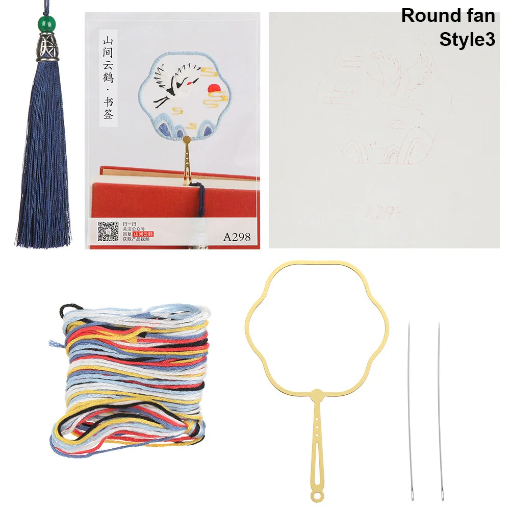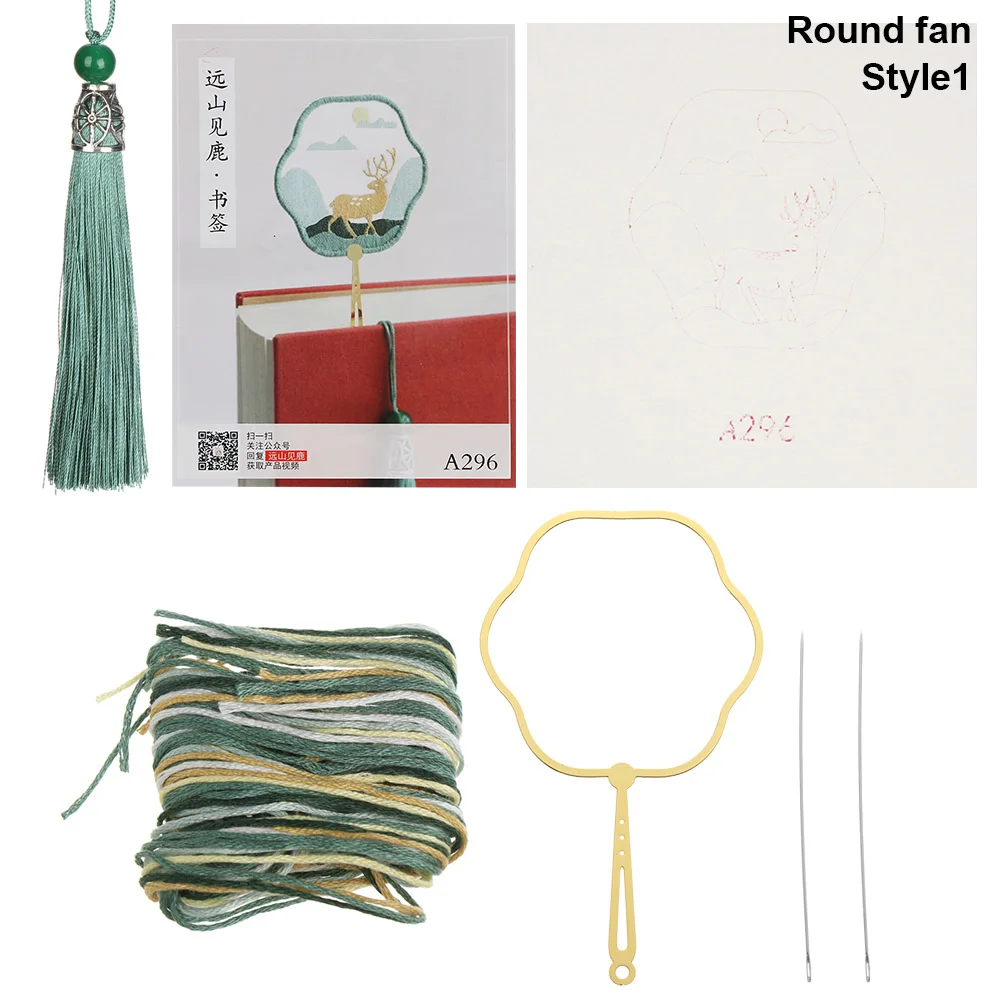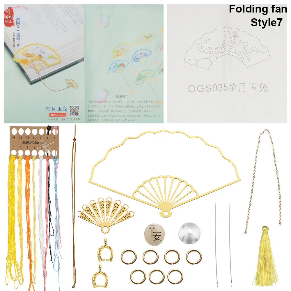 19 типов, в китайском стиле, для самостоятельной сборки, в форме веера, искусственная живопись, вышивка крестиком, кисточка, набор закладок, подарок для книг