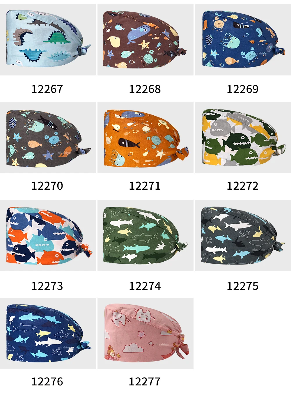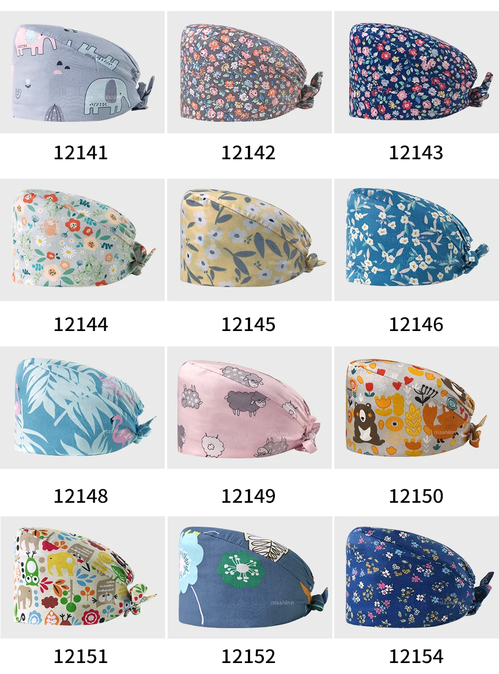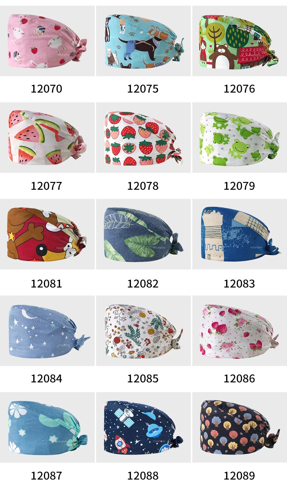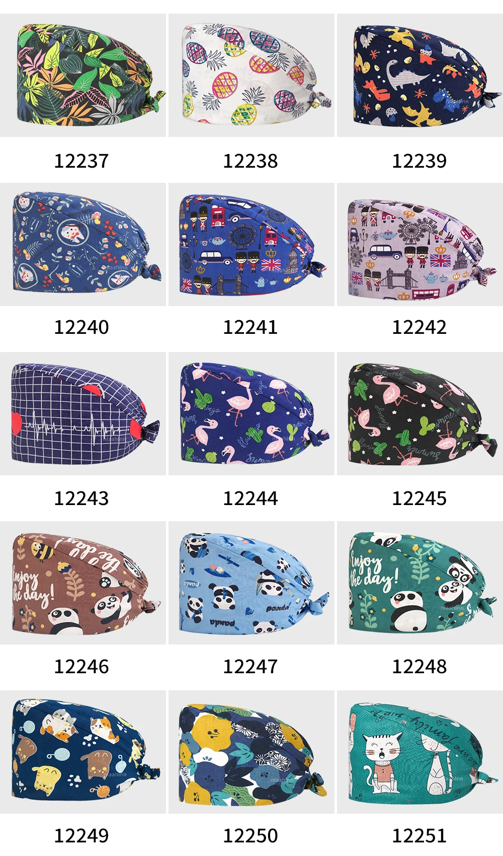 Шапочка из хлопка для стоматологической клиники, для операционной, с принтом, Абсорбирующая пот