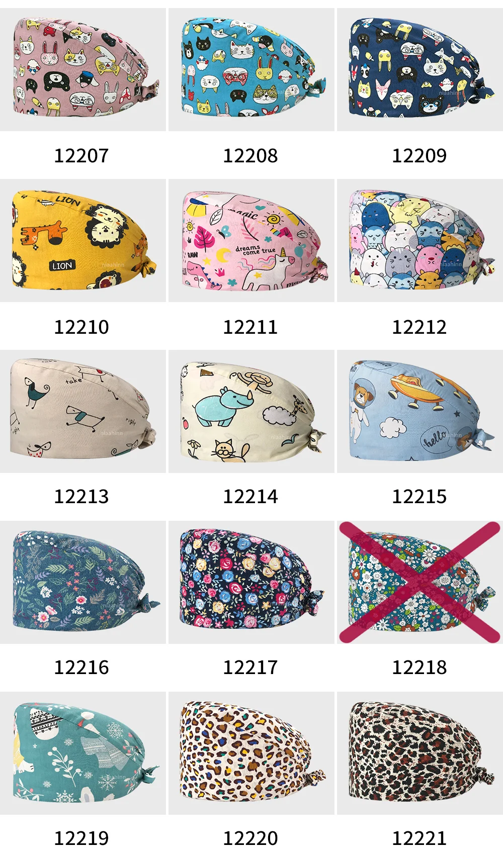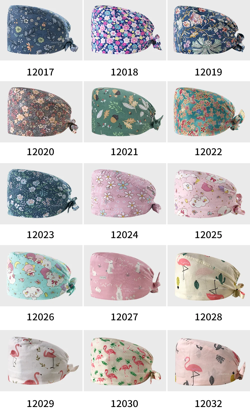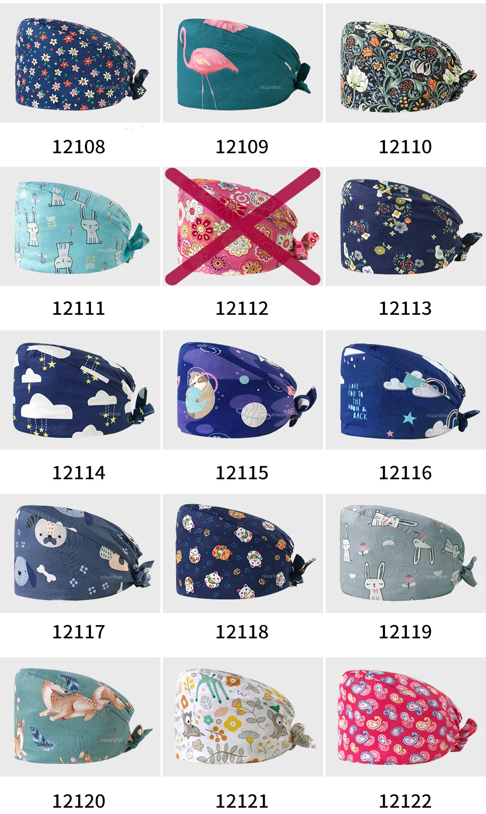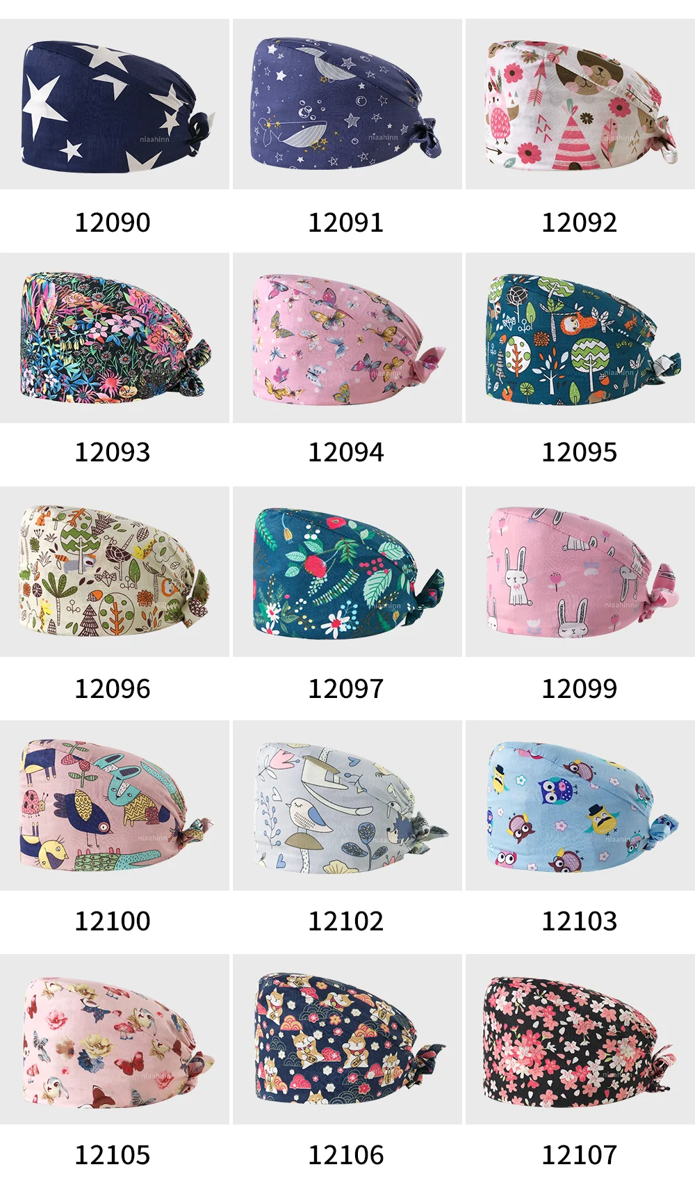 Шапочка из хлопка для стоматологической клиники, для операционной, с принтом, Абсорбирующая пот