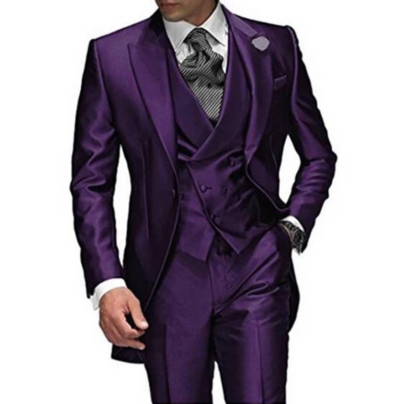 Красивые Новейшие свадебные костюмы с остроконечным лацканом атласн...