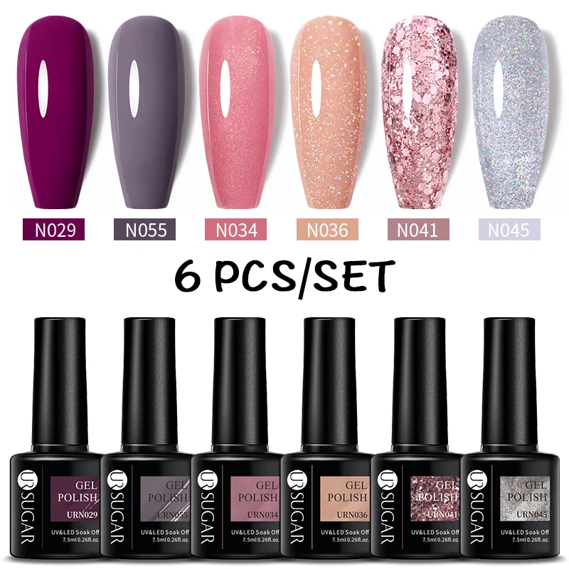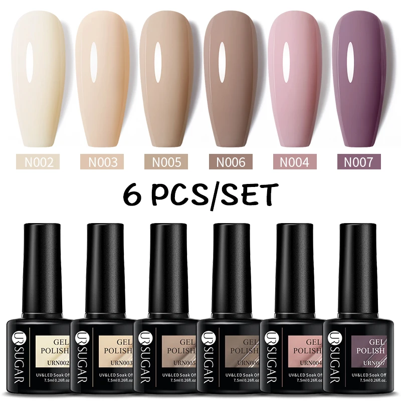 6 шт., Гель-лак для ногтей бордового, красного, персикового, фиолетового, телесного цвета