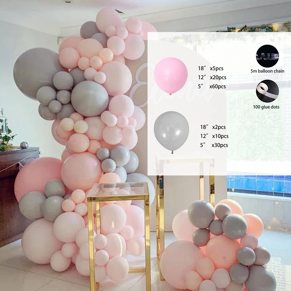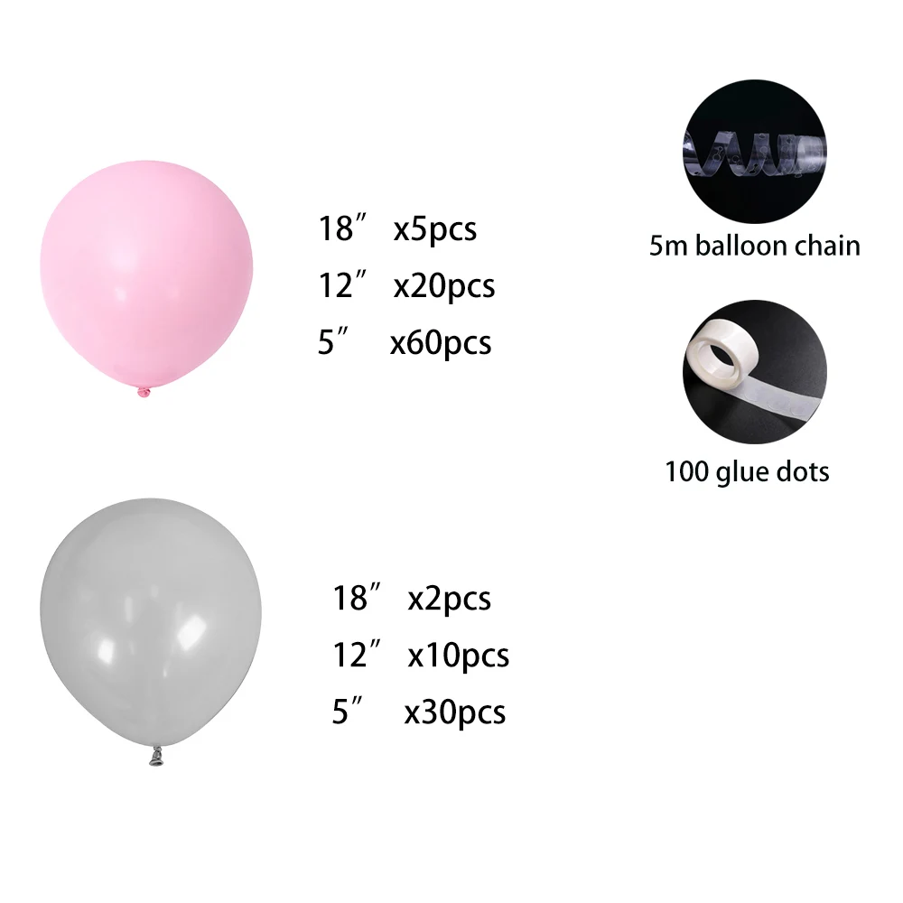 Посылка:60 шт 5inchPink20 шт 12 дюймов розовый5 шт. 18 дюймов розовый30 шт 5 дюймов серый10 шт 12 дюймов серый2 шт. 18 дюймов серый1 шт 5 метров шаров звено цепи100 шт Клей dost