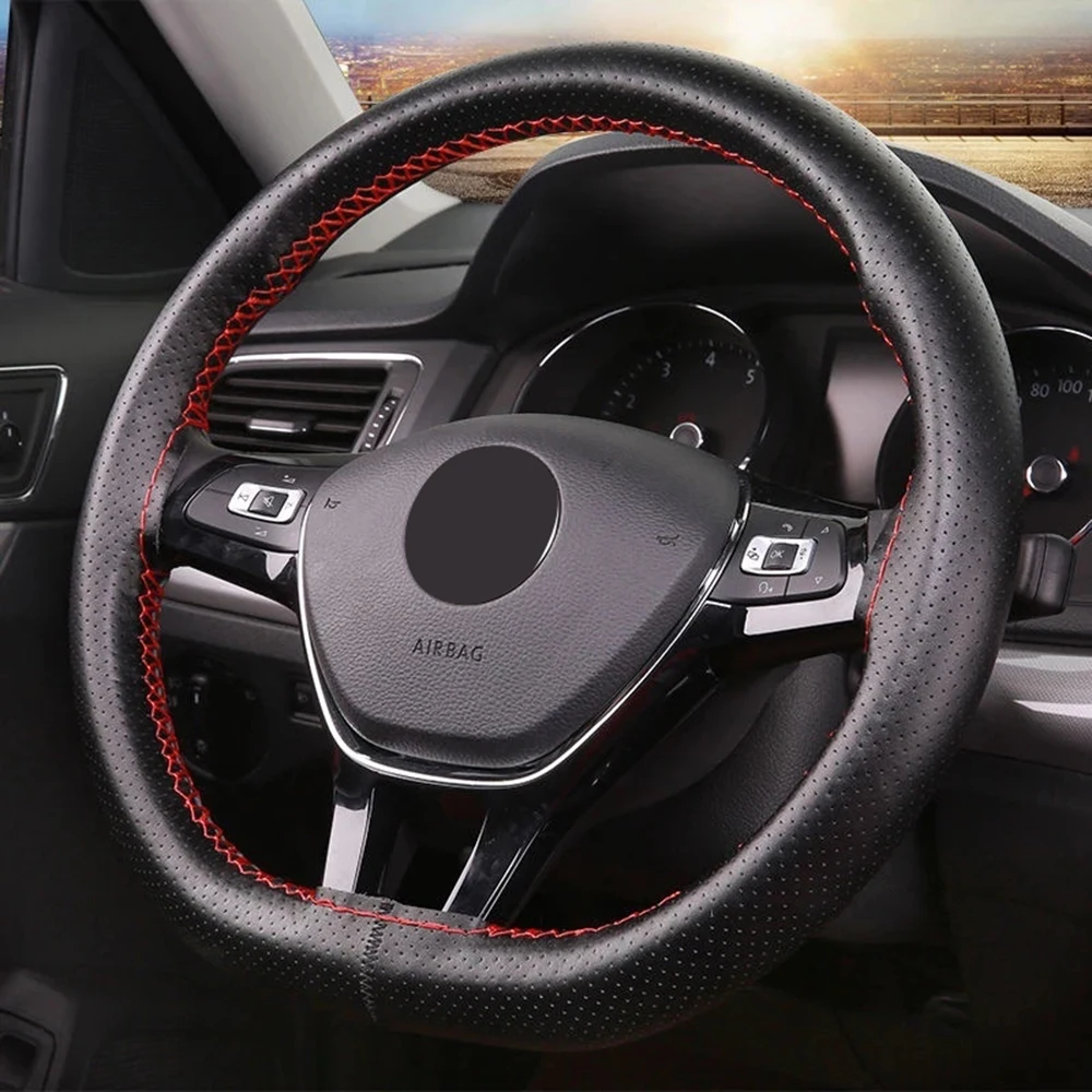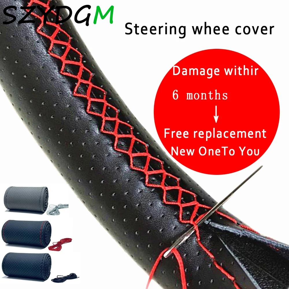 Материал: первый слой воловьей кожиЧехол рулевого колеса автомобиля из искусственной кожи DIY с иглами и линейными чехлами для стайлинга автомобиляДобавляет стиль вашему существующему рулевому колесу.Изготовлено из высококачественной искусственной кожи, с удобной ручкой.Дизайн пор, хорошая воздухопроницаемость.Также отлично подходит для замены поврежденных или изношенных Оригинальных Заводских кожаных покрытых рулей.