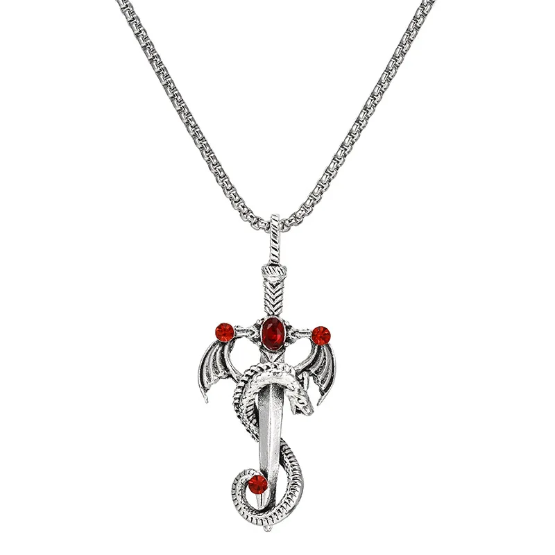 Мужские ожерелья с подвеской в стиле ретро, рыцарский меч, летающий дракон