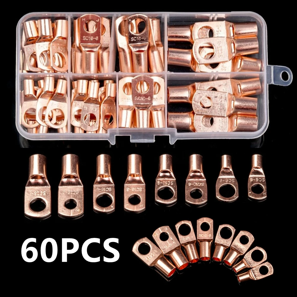 60 шт., проволочный наконечник, соединитель, кольцо SC6-25, медные соединители, голый кабель, Электрический обжимной соединитель, Diy Kit, провод, клемма