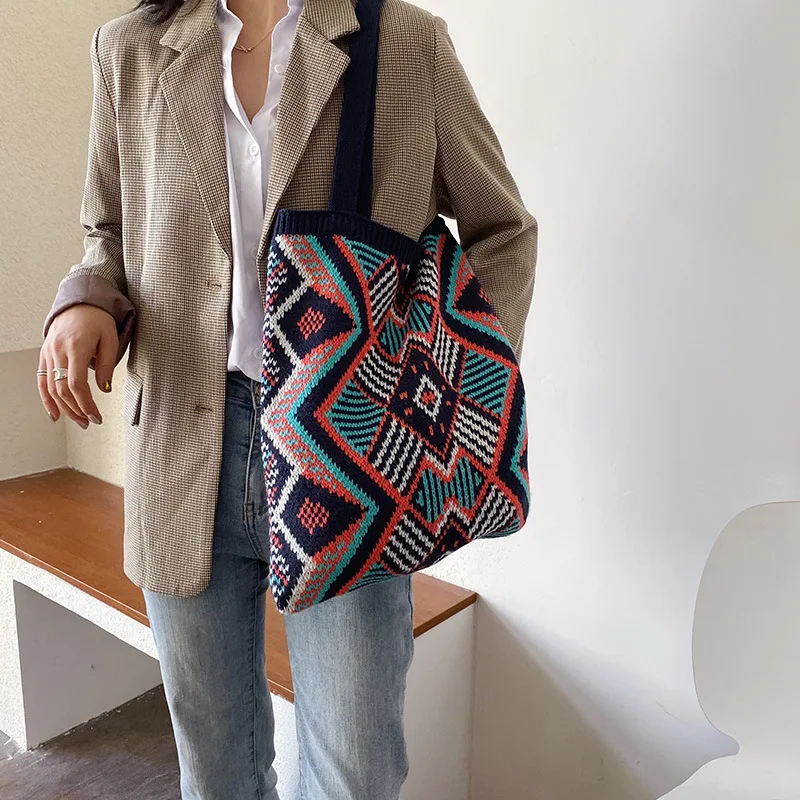 Женская вязаная Цыганская богемная шикарная ацтекская Сумка-тоут в стиле бохо, женская вязаная шерстяная сумка-шоппер с открытой ручкой, Женская Повседневная сумка 2021