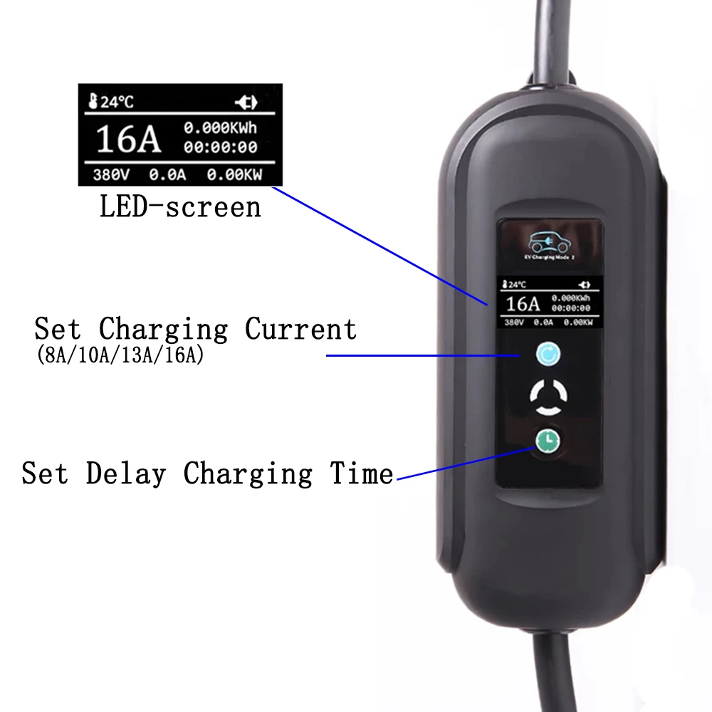 Регулируемое домашнее автомобильное зарядное устройство для электромобилей 11 кВт 16 А 3-фазное Сменное зарядное устройство для электромобилей Wallbox Быстрая зарядка сменная вилка CEE 5-контактный EVSE