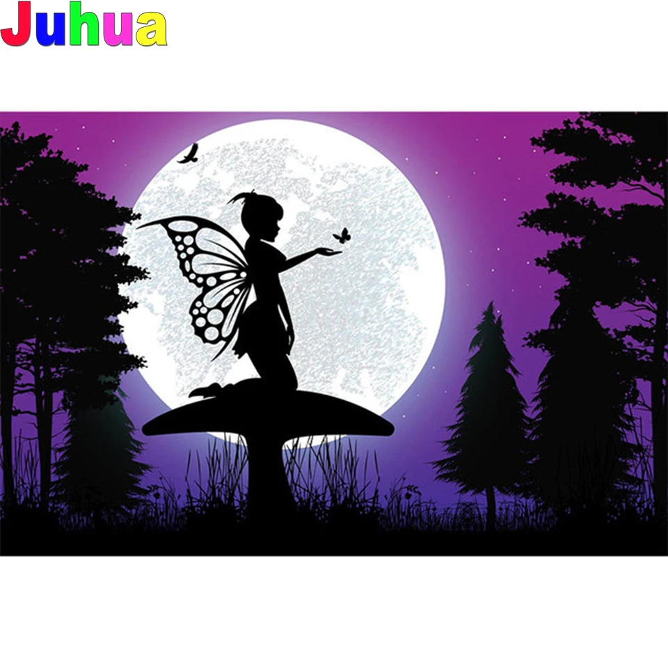 Мультфильм Бабочка Фея 5d Diy алмазная живопись полная дрель эльф Луна мозаика Ститч Алмазная вышивка подарок Детская комната Декор