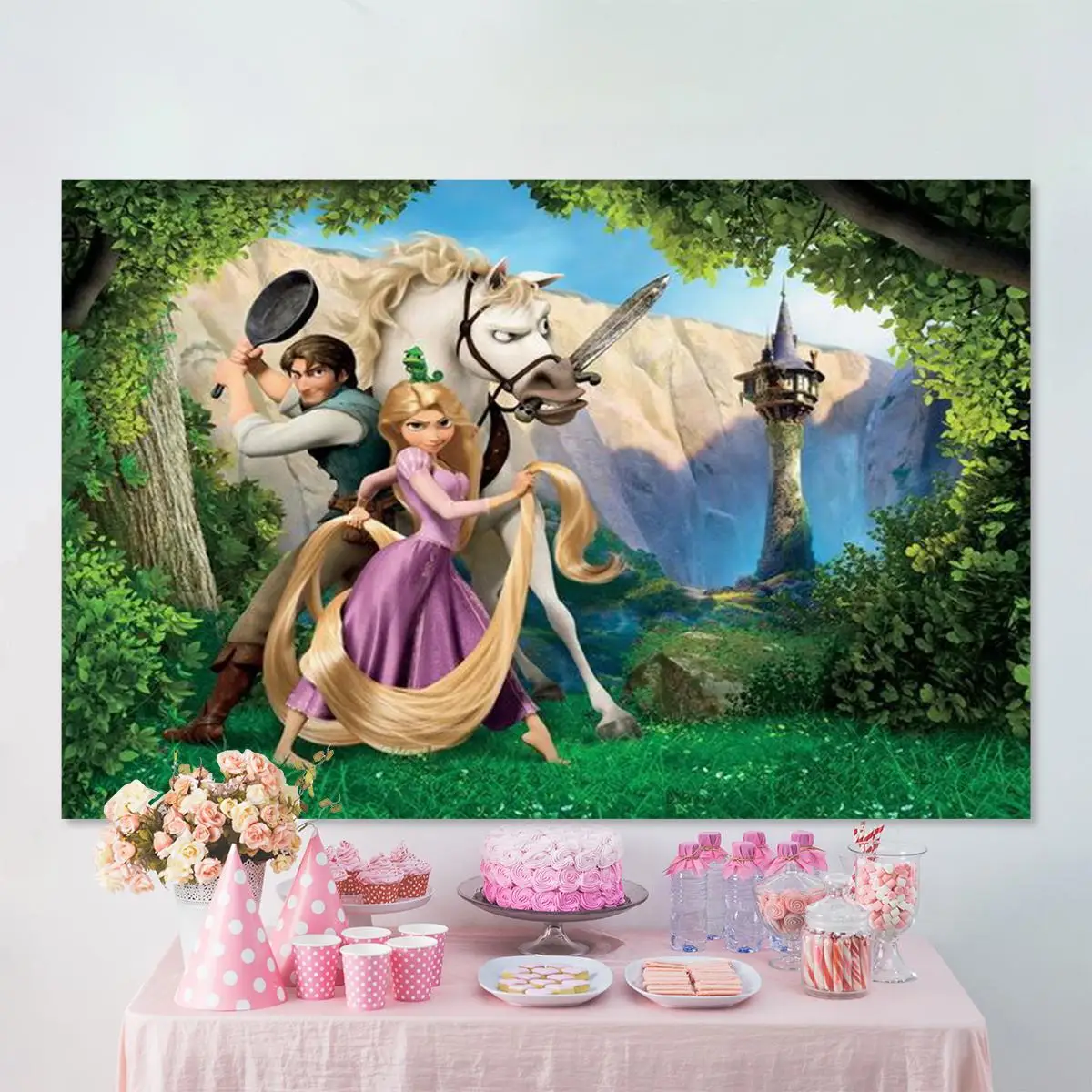 Фон с длинными волосами для фотосъемки с изображением замка принцес...