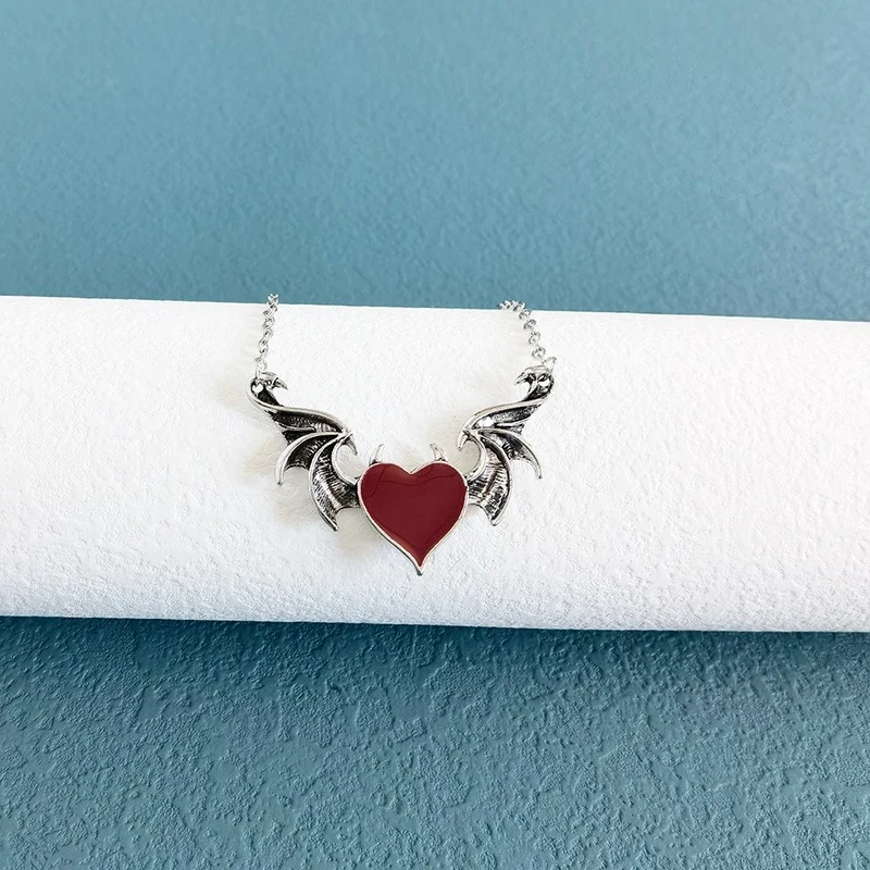 Ожерелье с крылом Летучая мышь с черным красным сердцем ожерелье с вампиром летучая мышь подарок для любителей летучей мыши посеребренное ожерелье с крылом летучая мышь ювелирные изделия на Хэллоуин