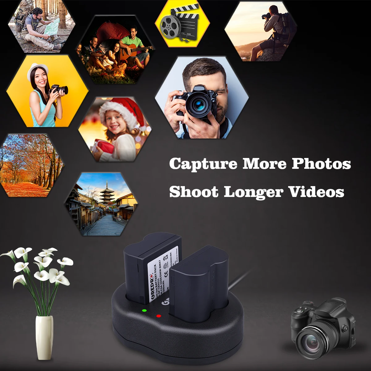 Небольшой и легкий светильник со съемным шнуром, 2 независимых разъема для зарядки могут заряжать 2 батареи одновременно или заряжать одну батарею отдельно.