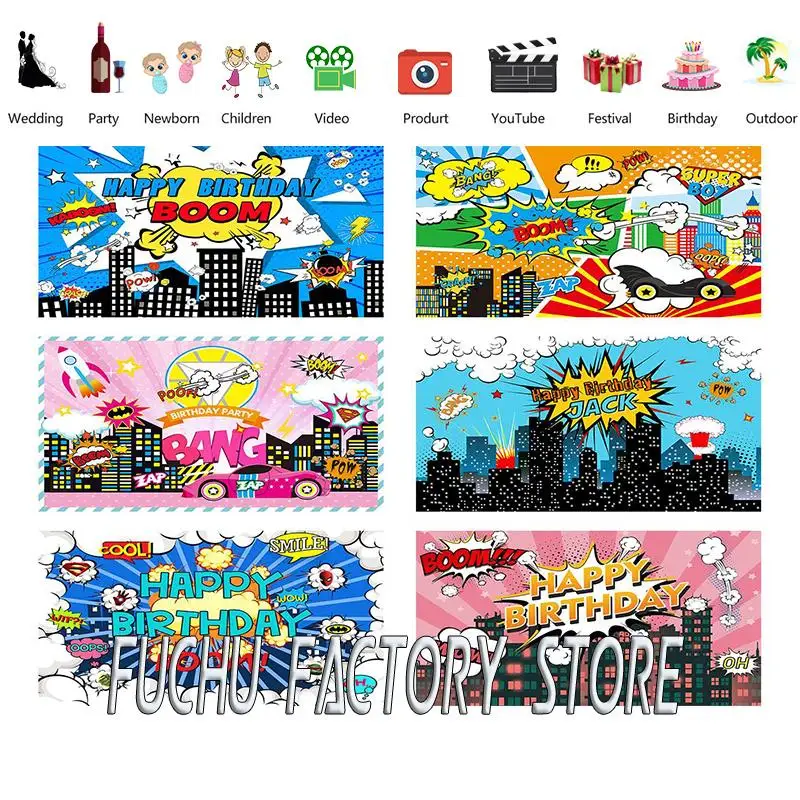 Супер герой городской пейзаж Фотография фоны супер герой день рождения детский фото фон Мальчик индивидуальный