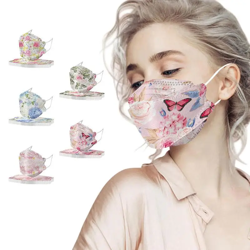 Маски для лица KN95 с цветочным принтом для взрослых, 10-300 шт., 4-слойная дышащая Пылезащитная маска для рта в форме рыбы, маски
