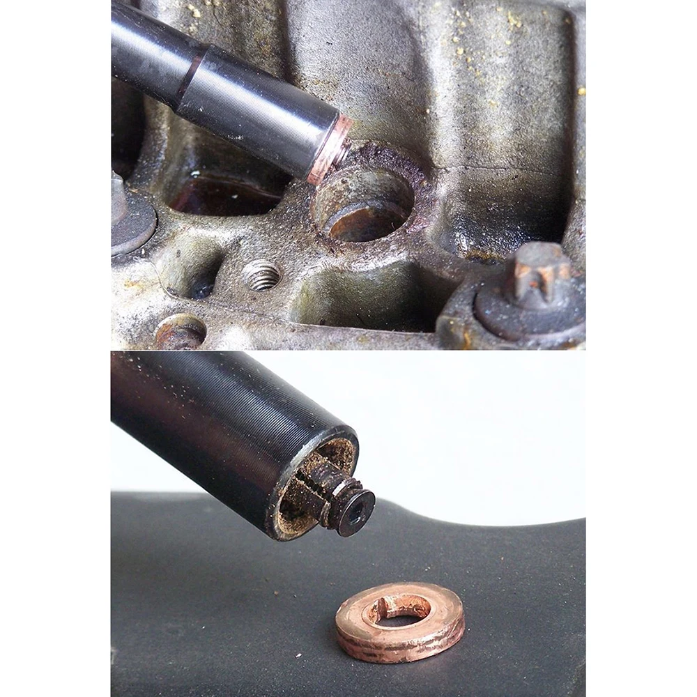 Этот продукт предназначен для использования в большинстве форсунок CDIl для удаления медной прокладки, которая уплотняет нижнюю часть инжектора. Удобная Резьбовая конструкция подходит для большинства транспортных средств с использованием топливного впрыска Bosch CDI. С помощью этого специального инструмента медная прокладка может быть быстро и эффективно удалена и установлена на дизельном инжекторе.