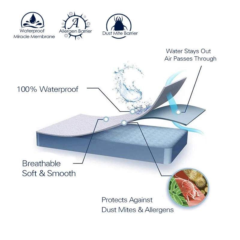 -Трикотажная ткань высокой плотности приятна на ощупь, идеально подходит для лета или для людей, прохладных прикосновений; Естественно впитывает влагу; Задняя часть покрыта гипоаллергенной мембраной, 100% водонепроницаемая и дышащая;