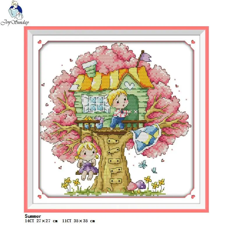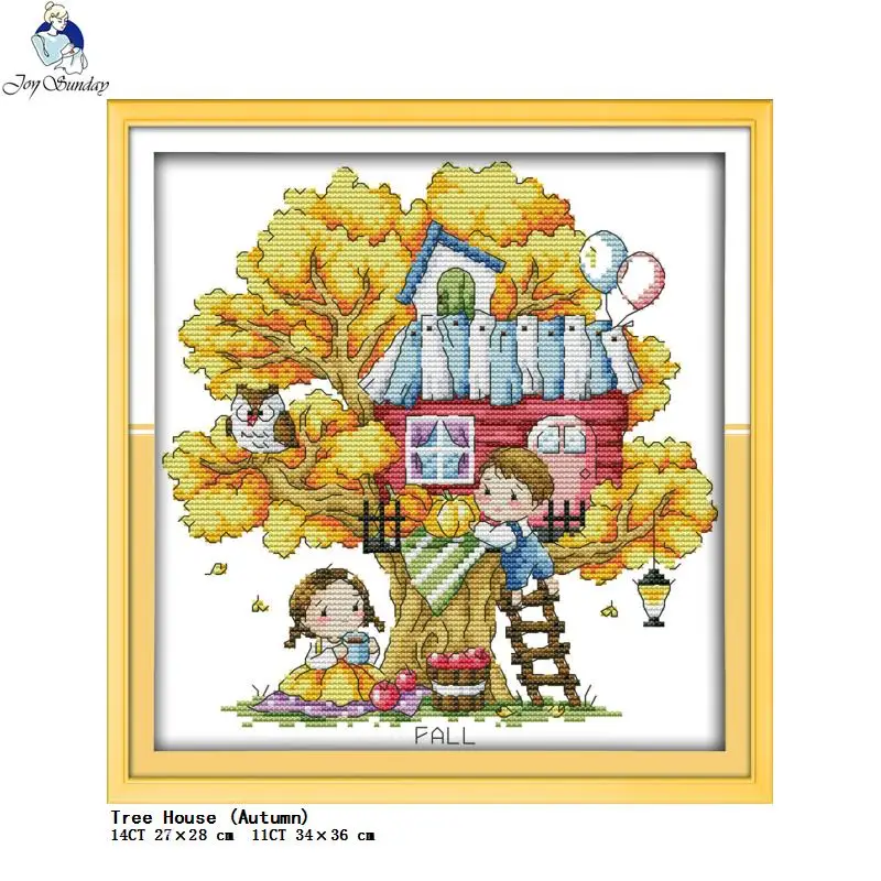 Набор для вышивания крестиком из мультфильма «домик на дереве», 11CT, 14CT, Набор для вышивания штампованных игл и ниток, украшение комнаты 1. Это DIY Набор инструментов для вышивания, вам нужно сделать свою собственную вышивку.