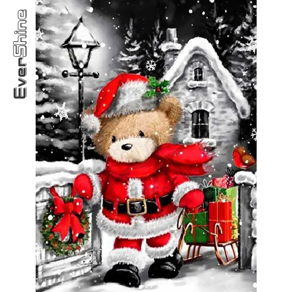 Evershine Бриллиантовая вышивка крестиком, медведь, полная квадратная круглая вышивка, зимнее украшение для дома