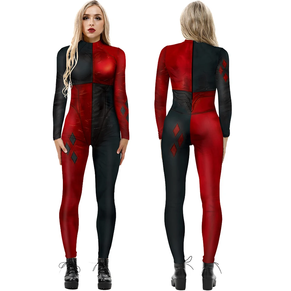Костюм Квинн для косплея, черный и красный комбинезон, костюм зента...